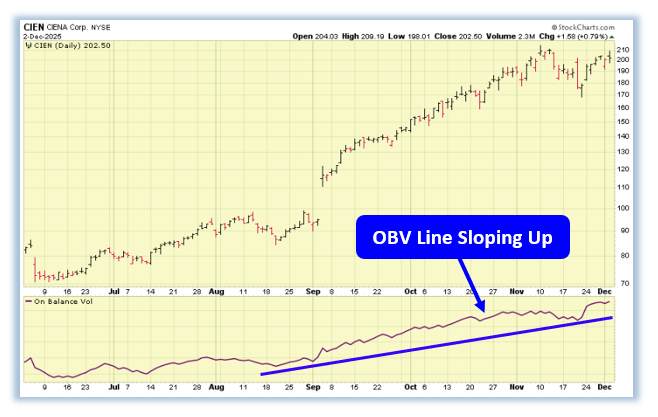 That momentum leads us straight to Ciena Corp. (CIEN) — a name that’s been climbing with such force it finally demanded a spot in today’s T.O.D. lineup. What pushed it over the edge wasn’t just the powerful trend, but a cluster of technical signals that traders simply can’t ignore. The OBV line has been grinding steadily higher, confirming real underlying accumulation, and CIEN is now pressing against fresh 52-week highs even as the broader market has been unsettled. On the chart, its relative strength is undeniable, with price action carving out a clean series of higher highs and higher lows that leaves weaker names in the dust. And with the stock sitting right on the doorstep of a potential breakout, the message is loud and clear: momentum isn’t fading — it’s intensifying. This is exactly the kind of setup that belongs on every trader’s radar.