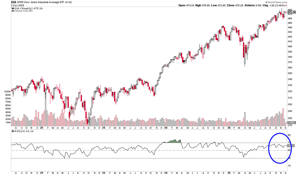 With DIA trading at $475.26, a push up to $485 could deliver an estimated 36% gain on a CALL option.