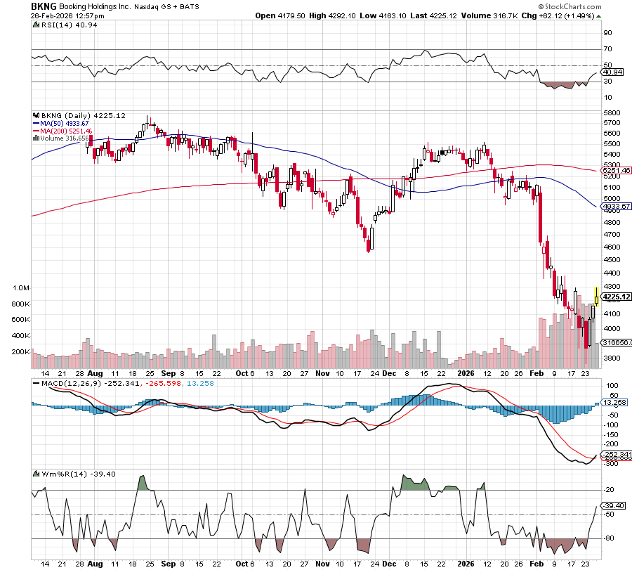 Booking Holdings, which trades at $4,286, will split its shares 25:1 after the market closes. on April 2. That should help lower the stock price to about $171 a share.