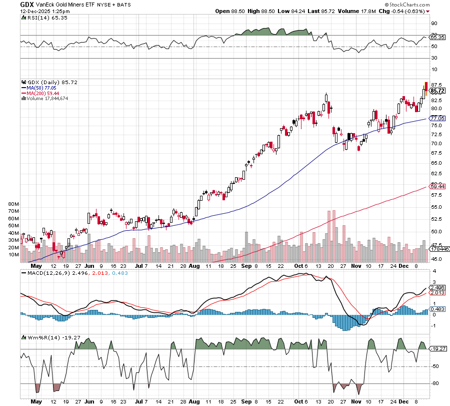 Last trading at $4,342.81, some analysts are arguing for $5,000 gold in the new year. And if that’s the case, physical gold, stocks, such as Newmont (NEM) and gold mining ETFs could explode higher. In fact, some of the top gold ETFs to keep an eye on include: