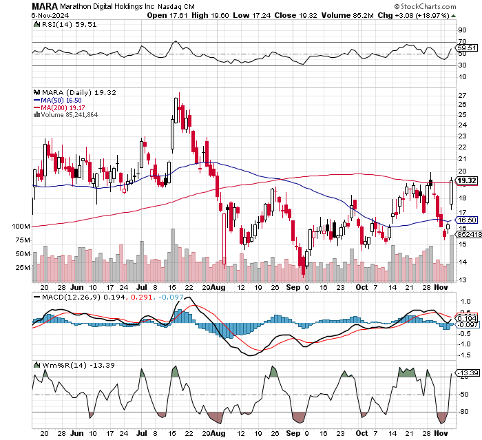 Or, keep an eye on Marathon Digital (MARA), a Bitcoin mining stock that typically runs with Bitcoin. Last trading at $17.80, we’d like to see MARA run well above $20 near term.
