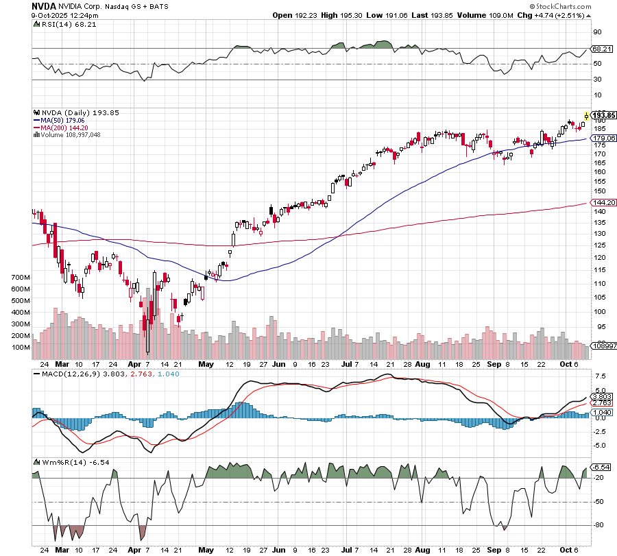 Since bottoming out at around $165 in September, NVDA is now up to $193.64. From here, we’d like to see an initial test of $200 a share.