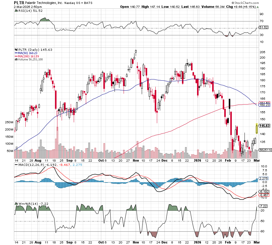 From $136.64, PLTR is now up to $146 as of Monday, March 2.