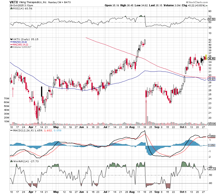 As for new ideas, Viking Therapeutics (VKTX) is gaining momentum again.