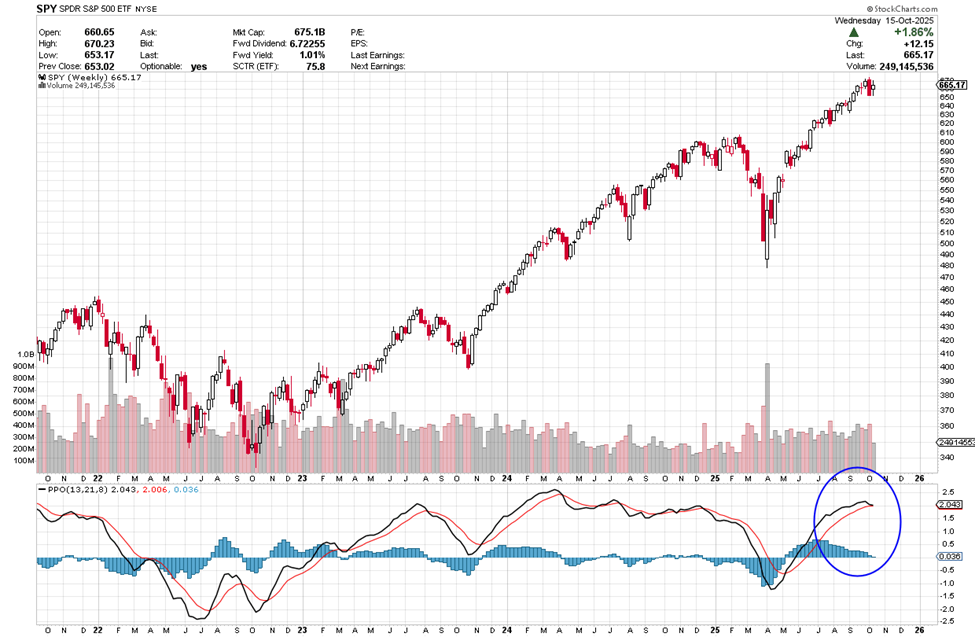 SPY, or the SPDR S&P 500 trust, is an exchange-traded fund that trades on the NYSE Arca under the symbol SPY. It’s an ETF covering companies traded within the SPX Exchange Traded Fund. It trades in high volume which is one of the reasons the Percentage Price Oscillator (PPO) indicator is effective when confirming direction.