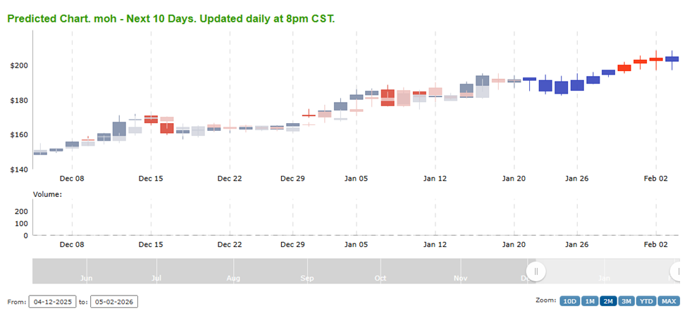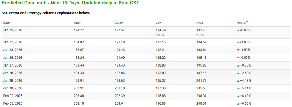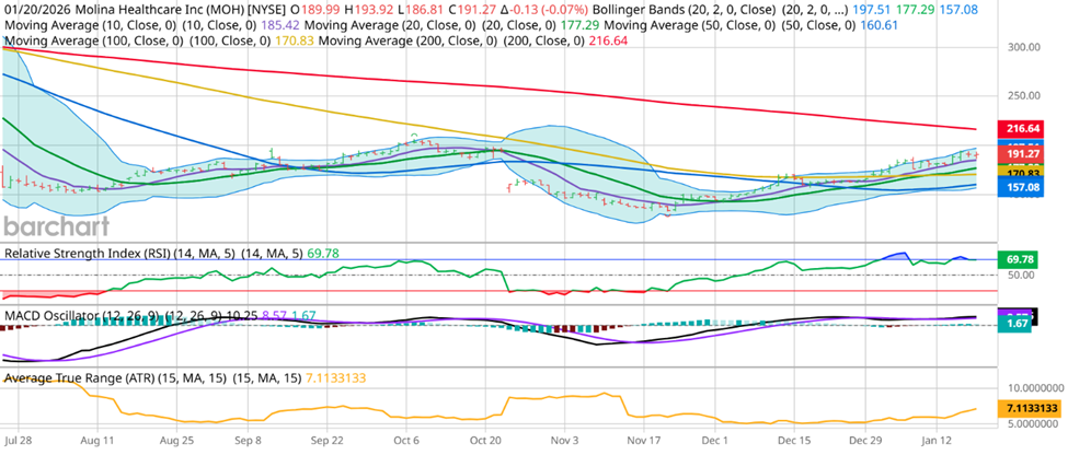 One name caught my eye because of its much more stable bullish behavior, and that’s MOH:
