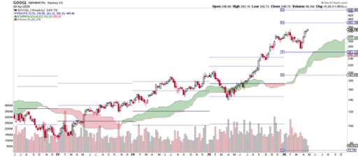 Price is now pressing back toward recent highs, while prior pivot zones below may serve as support if the stock pauses or pulls back. As long as GOOGL holds above the pivot area and cloud support, buyers appear to maintain control with upside levels back in focus.