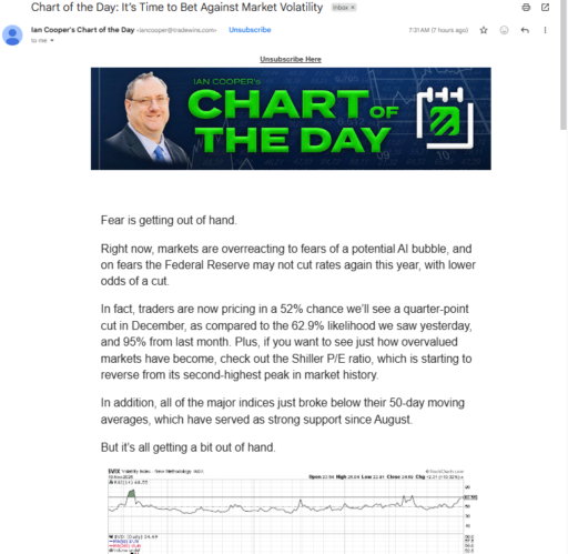 Stop the endless searching for the next ticker to watch. Just open your inbox and see the Chart of the Day. Ian Cooper sifts through a mountain of charts each day so you don’t have to. See the move setting up in black and white and get the quick-read explanation of why it is the trade you need to pay attention to.