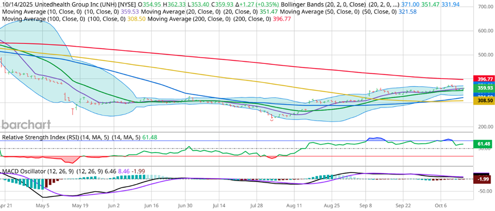 Ever since Warren Buffett announced that it was a great investment and that he had put about $1.6 billion dollars into his equity position, UNH has seen a very strong floor while continuing to grind higher: