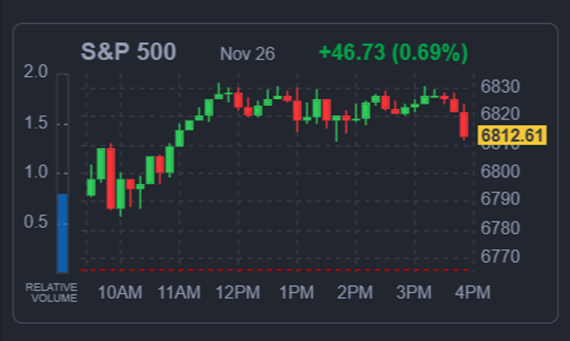 Last week we talked about buying Dec 19th 650 puts. The premium would have been $9.86 on 11-20 and you could have sold on 11-21 for $15.65, a 59% profit.
