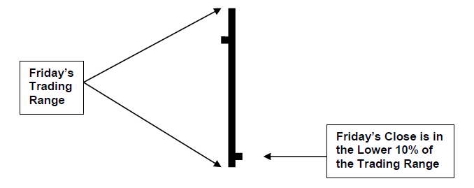 In our opinion, when the market finishes very weak and closes in the lower 10% of the previous day’s range a bounce back on Monday, Tuesday, Wednesday and Thursday is quite normal. This is not the case, however, on Friday. The short-term traders are often ‘long’ the market and they have a tendency to close out their positions going into the weekend. This added selling puts pressure on prices which is lacking on the other days of the week. Therefore, the combination of a very weak Thursday with additional selling prior to the weekend can make for a very weak Friday.