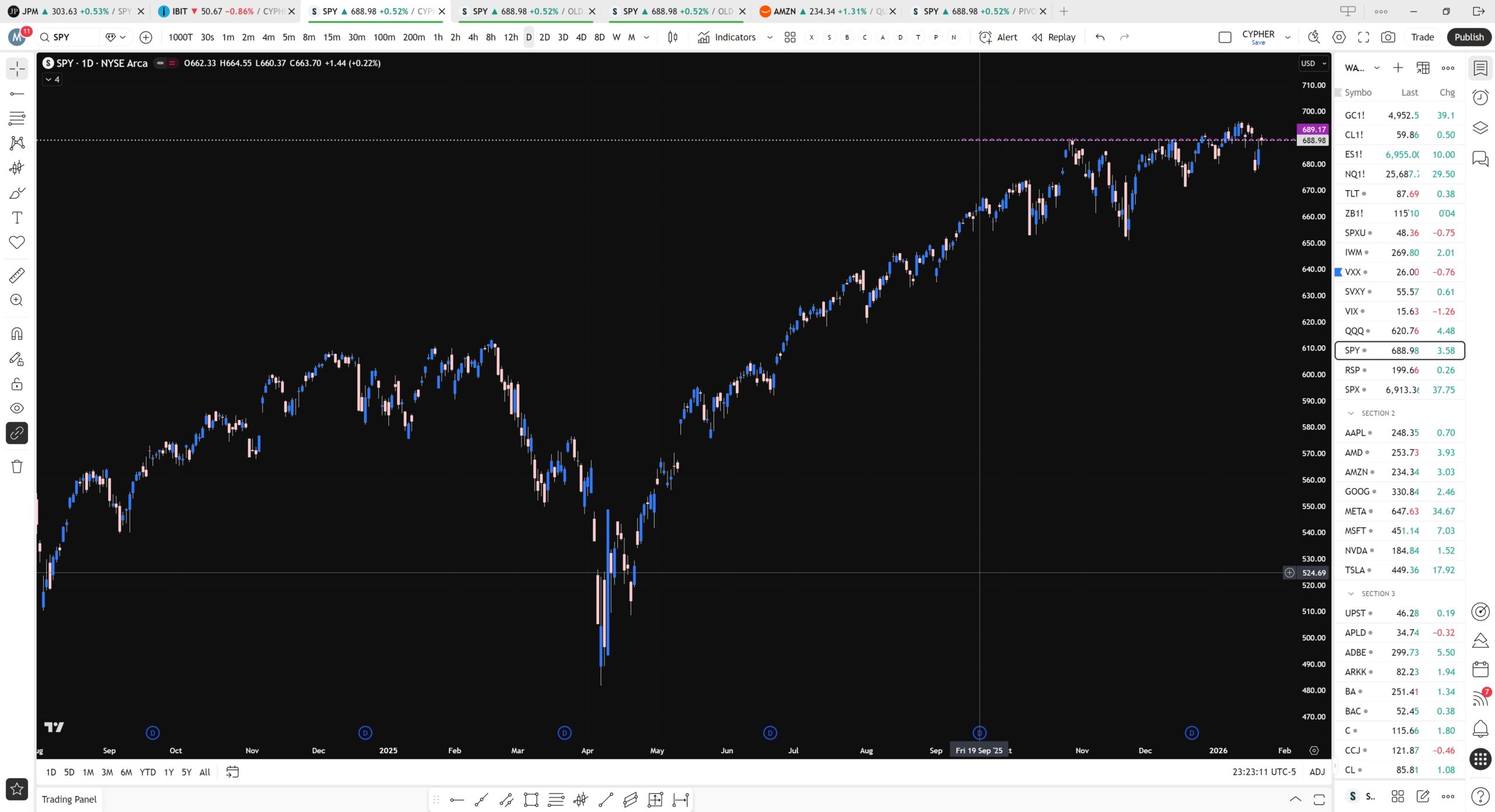 “News” is sending the stock market up and down. Meanwhile major stocks like AAPL, MSFT, and AMZN have reached various levels of “oversold” that the majority of the time would make me an interested buyer. On the opposite end the smaller stocks that make up the Russel 2000 are making new highs that may be considered “overbought” levels. So where does this broad spectrum of results leave us looking forward?