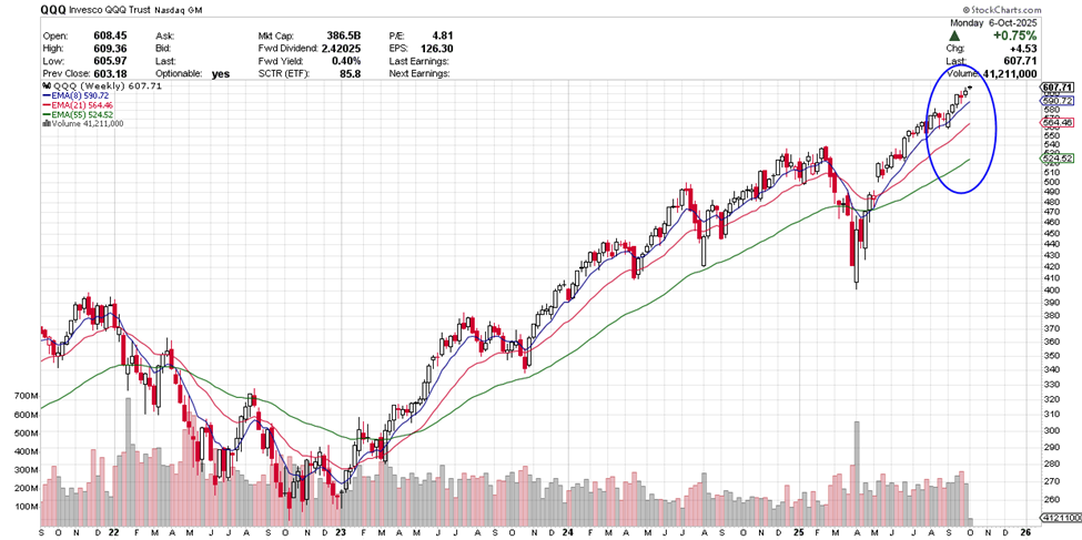 Let’s start with a look at what the NASDAQ, the index QQQ tracks, has done recently.