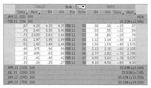 With the opportunity on the chart still a viable candidate, move onto the option chain pictured below to analyze the options for a valid trade. Looking at the option chain, the FEB expiration options now have 59 days to expiration, which is optimum for trading this technique.
