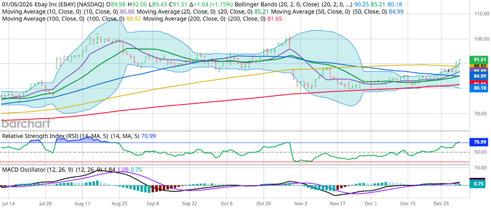 One name caught my eye because of its much more stable bullish behavior, and that’s EBAY: