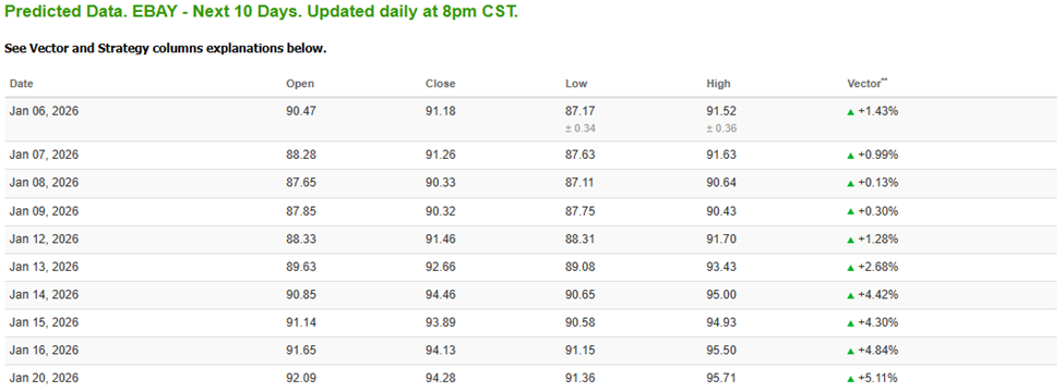 Looking at the AI projected move over the next 2 weeks, the model is projecting a range of $90 to $95, with a generally bullish bias. To give me some leverage for a move like that, I can look at a simple call vertical, buying the January 16th, 2026 $90 call and simultaneously selling the January 16th, 2026 $94 call, which is currently valued at $1.82. If the model is right, I could be looking at a 100%+ return on this trade, and that’s an exciting setup for me!